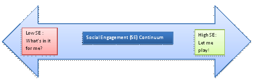 It can be difficult for a trainer working through a set syllabus to handle a group going off the topic. In particular, if the group is representative of the entire SE continuum, there is a gulf of understanding between the least socially engaged and the fast learners. Simply going through a powerpoint presentation won’t cut it here. Instead, use the resources at your fingertips. Let the strong SE group come up with applications and ideas of how and where they will use what you are teaching, and how it applies to them. The half of the class that goes quiet when those questions are asked will be learning from the answers, identifying common ground, and discovering their reason to take those steps to social engagement. If you can leave a session with the strong SE group excited about a new toy, and the low SE group owning a real reason to engage – now that’s effective!